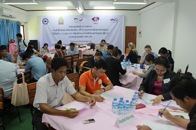 In a joint cooperation, DVV International, the Department of Non-Formal Education (DNFE), the Non-Formal Education Development Center (NFEDC) and Participatory Research in Asia (PRIA) conducted a regional workshop on the concept of soft-skills from October 12th to 15th. Opened and chaired by Mr Ounpheng Khammong, deputy director of DNFE, Mr Somsy Southivong, director of NFEDC, Mr Uwe Gartenschlaeger, Regional Director of DVV International and Mr Kaustuv Bandyopadhyay (PRIA), the three days aimed to 1) to develop an understanding on soft skills’ concepts and their importance in NFE 2) to build skills on decision making, strengthening teams and negotiation and conflict resolution styles and 3) to agree on the next steps.