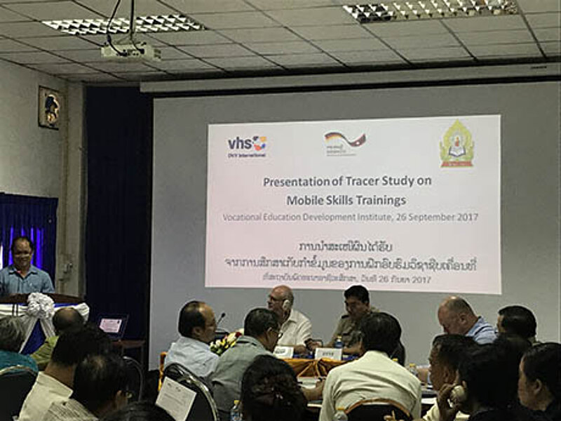 The results of the study were presented to around fifty representatives from various Lao Ministries and State agencies as well as development partners during an event at the Vocational Education Development Center. Lead consultant Michael Schultze reported that considerable impact could be approved regarding improvement of livelihood, income generation and motivation for further learning. However, the mobile skills format is still not included into the Lao education system and purely linked to key stakeholders on the ground, e.g. the business sector.