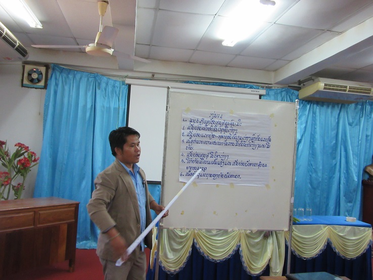The workshop started with a review of the activities done after the workshops in District Sepon and Nong, continued by a questionnaire, answers and comments. Dokkham Xomsihapanya shared her experiences from her CLC visit in Cambodia. 4 groups, mixed from CLC leaders and government officials, discussed and developed strategies and prescribed responsibilities for the following topics: